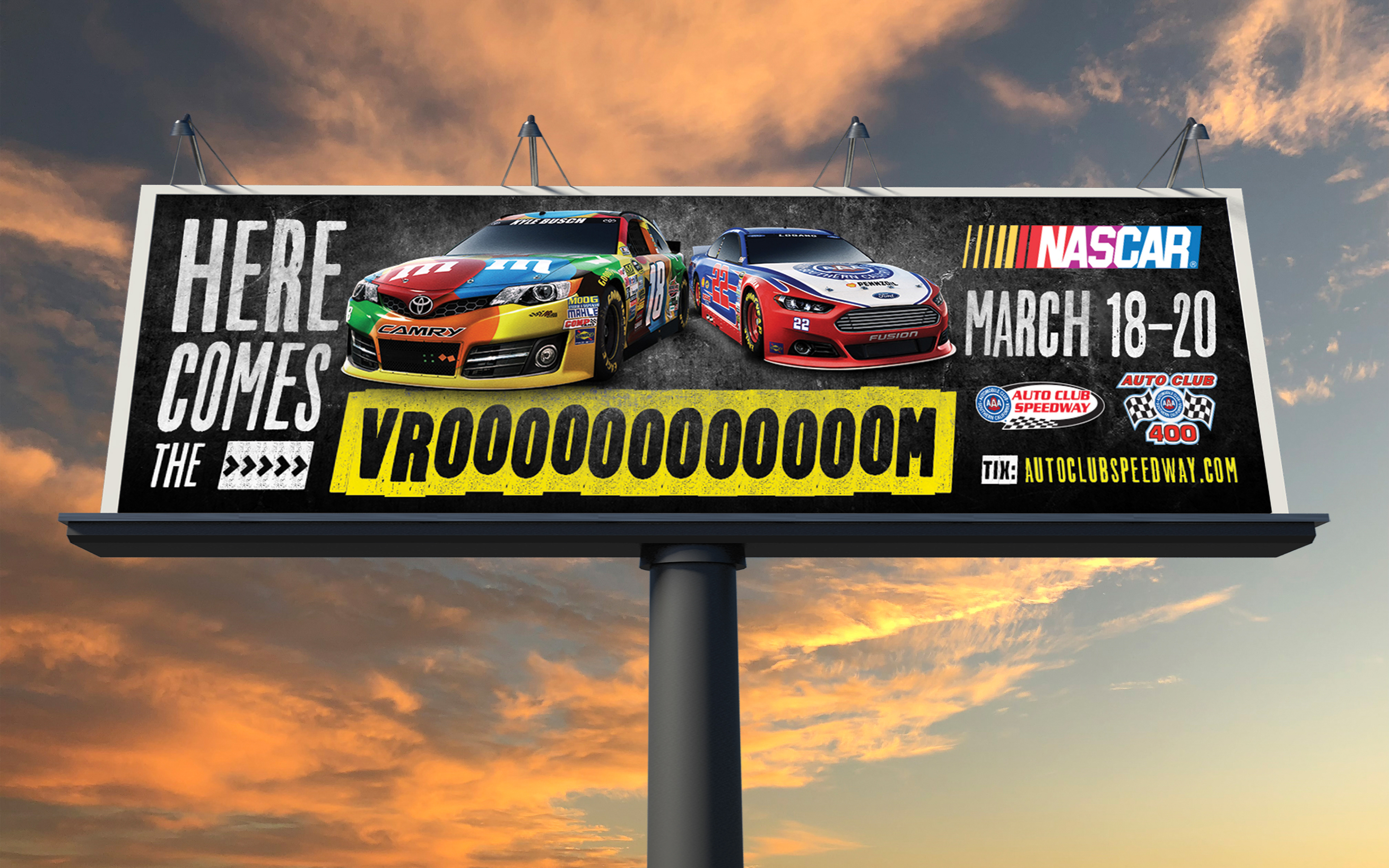 So many numbers and literal stars lined up to make this a memorable Auto Club Speedway concept. By using the driver numbers from the cars we created captivating stories and visuals to showcase the storylines at the track. I can't drive 55 Mr. Sammy Hagar was recruited to film that years spots and we had to Jump at the opportunity to make it memorable.