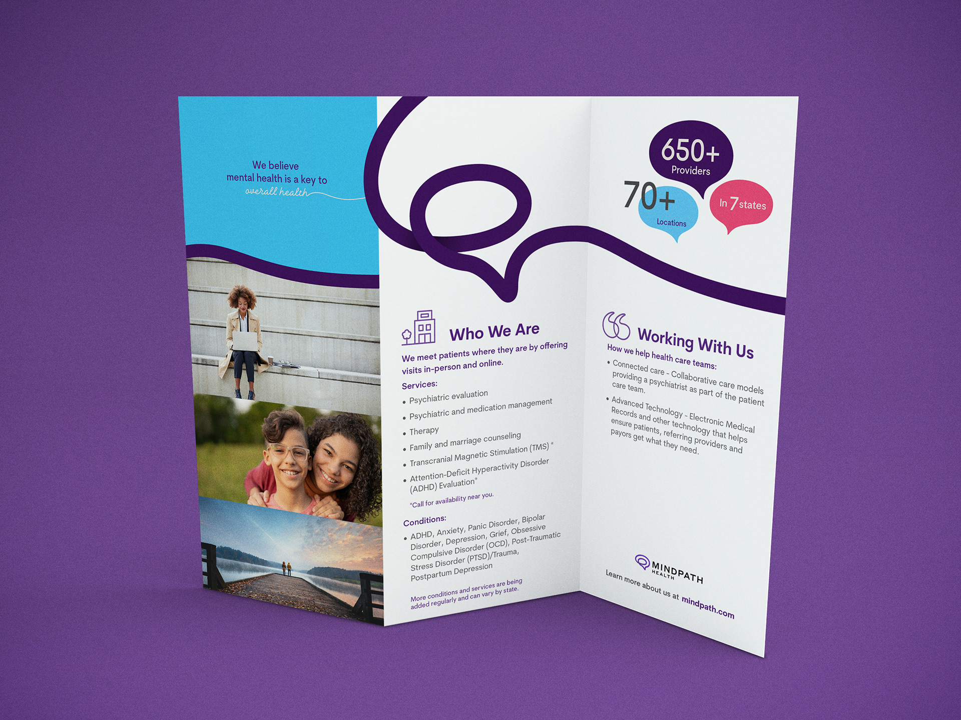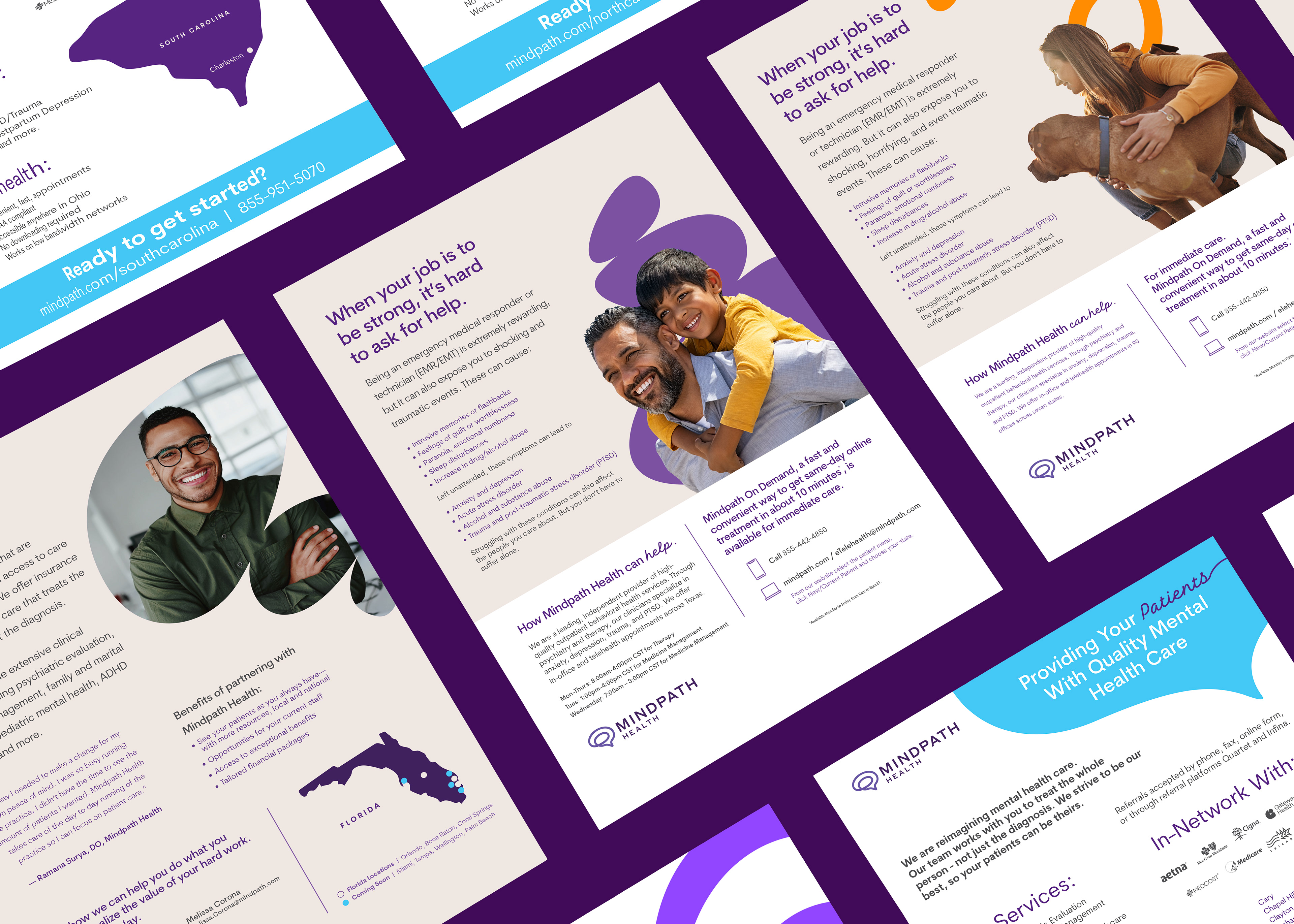 Mindpath Health, a leader in finding the right care for your mental health journey was an amazing side project from a trusted work colleague. With a brand pre-built for the task, my job was bringing everything life. Mindpath lacked an in-house designer so it was my task to follow the brand standards and develop all of the collateral to set them on a path of success.